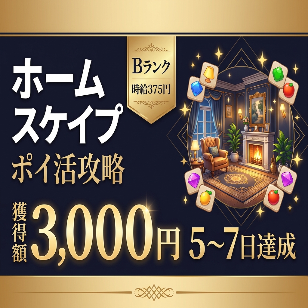 この記事を読めばわかること:ホームスケイプを一度もプレイしたことがない方でも、5〜7日・約7〜8時間でMoppyで最大3,000円を獲得できます。マッチ3パズルをクリアして部屋を改装していく攻略手順を操作レベルで解説します。